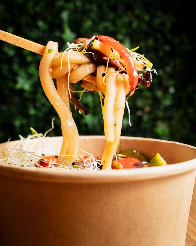 🍜 makaron udon • 🍚 ryż • 🥩 wołowina • 🍗 kurczak • 🍤 krewetki • 🌱 tofu