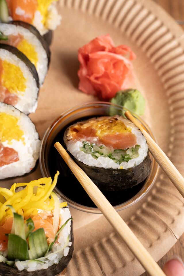 Tworzymy sushi w wielu odsłonach – od klasycznych Philadelphia Roll, przez rolki z tempurą, sezamem, mango, melonem czy pikantnym majonezem, aż po kreatywne kompozycje grillowane.